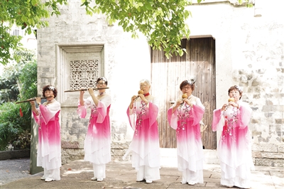 75岁的王丽莉是这支乐队的队长。退休后,闲不住的她在老年大学学习了葫芦丝,积累了一些乐谱知识。平时在乐队的训练中,她总是耐心地教大家识谱、数拍子,将自己所学毫无保留地传授给大家。不少学员也都愿意赶1个小时以上的路来学习,从最初对葫芦丝一知半解,到现在能熟练演奏好多曲目,学员们感慨,自己从学葫芦丝中收获了不少乐趣。