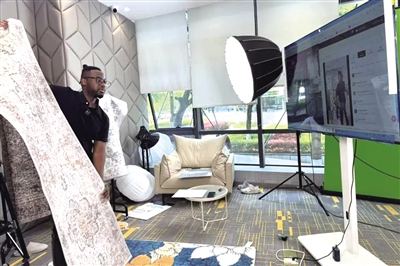 “洋主播”Bati通过直播向美国消费者推介中国地毯