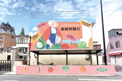 在“俞嫂菜摊儿”周边,一幅幅精美的蔬菜墙绘格外吸睛。这些墙绘以蔬菜为主题,色彩鲜艳、生动形象,描绘着各种蔬菜的生长姿态。同时,社区积极发动居民和志愿者参与,大家共同清理垃圾、维护绿化,原本单调的墙面、普通的十字路口,变成了充满生机的社区新地标。