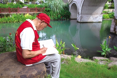 新开河穿过浙江杭州上城区望江街道,汇入大运河。已有50多年党龄的老党员胡福庆,是这条河的民间河长。从2015年开始,10年风雨无阻,胡福庆攒下21本3700多篇巡河日记,巡河里程上万公里,为家门口的河流写下70多万字的新时代绿色编年史。