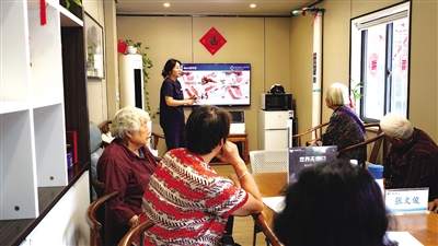 老年居民参加养生讲座