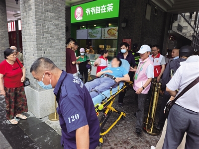 在位于湖滨步行街的知味观总店,一位老人突发不适,身体失控倒地、无法言语,气氛瞬间紧张。此时,在附近湖滨红十字爱馨驿站值守的红十字志愿者们听到呼救后第一时间赶到现场。“大伯、你怎么了?”“大伯、哪里不舒服?”“单洋,你马上拨打120!”红十字志愿者们分工合作开展应急救护。经过“轻拍重喊”呼叫后,老人恢复了意识,120电话也打通了。