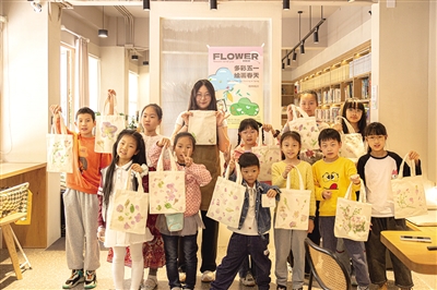 有间书房开展“多彩五一 绘画春天”植物拓印活动