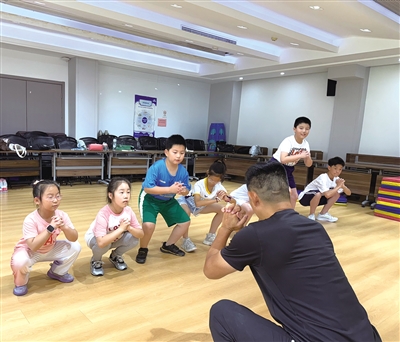 此外,在课间,孩子们也不会“闲着”,减重营为他们安排了“微运动”,比如平衡运输赛、迷你接力赛等跑跳游戏,让孩子们在玩的过程中就进行了适度的锻炼。“集训就是给孩子们的日常生活‘打个样’,安排‘微运动’也是为了告诉他们,回到学校去以后,课间也不要久坐。”丁侠心说。