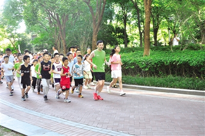 住在此处的上官光将是跑团的发起人。起初,每天晨跑的他发现,在暑假期间,每当他跑步时,身后总是缀了几个“小尾巴”,后来几位邻居找到他,说起自家的“神兽”:有的放假就爱睡懒觉,有的体重越来越重……于是,上官光将主动揽过担子:那我组个团,带着孩子们一起锻炼吧!
