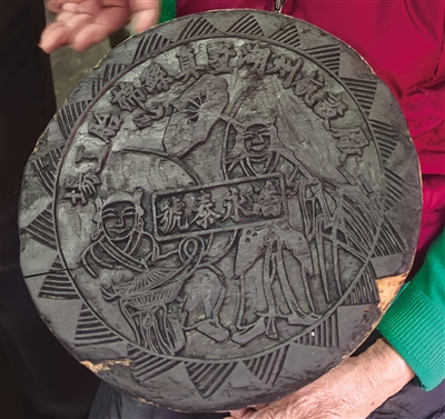 “潘永泰”就是在那时候有了自己的店牌,一枚很大的木头圆章,刻的是“和合二仙”,边上有“场设杭州湖墅真丝绵胎工场”字样。圆图章沾上蓝色染料,印在棉花胎上,既是店牌,也是商标。