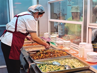 “今天有玉米炖排骨和清炒鸡毛菜,给您留份少盐的好吗?”接过白马庄社区居民张叔叔的餐盒,食堂阿姨熟稔地询问。在这里,食堂员工早已和老食客打成一片,大家都成了“知根知底”的朋友,许多老人的“特殊需求”,员工们早已记在心上。