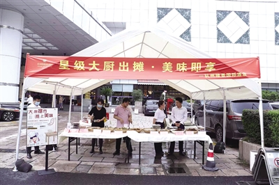 日前,位于湖滨街道平海路上的杭州华辰国际饭店门口,飘起阵阵诱人香气,饭店新设的外摆档口一推出,就立即受到周边住户与上班族追捧,接连几日的营业基本售罄。