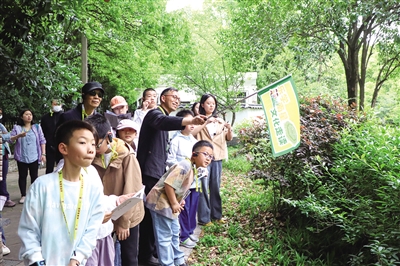 区级文化特派员刘旭强(图中执旗者)组织学生开展“乐学南星”文化走读活动