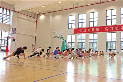 本报讯(丁兰街道) 清晨,杭州市丁蕙第二小学白鹤校区室内体育馆里已是一片跃动的景象,不少青少年正在列队热身,欢笑声充满整个场馆中。这是由丁兰街道枫景园社区与枫享社会组织联合打造的“育爱兰精灵”暑期运动夏令营,来自枫景园及周边小区的孩子们组成了一支充满活力的运动队伍——“青枫健身团”。