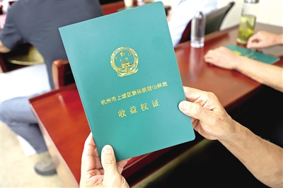 今年2月,丁兰街道沿山村获批全省首个集体统管山林地收益权量化到户试点,对1427亩集体山林统一收储管理,其中800余亩山林地实行折股量化到户。分股不分山,分利不分林。“改革后,山林地由集体统一经营管理,林农仅享有集体所有权带来的收益权。”杭州市规划和自然资源局上城分局相关负责人介绍,此次发放收益权证,正是确保村民能够共享生态资源增值的红利。
