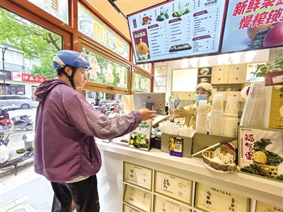 “外卖小哥、快递员每天们顶着大太阳工作,特别辛苦!我能为他们提供一点方便,心里也挺高兴的!”舒婷果业老板朱毛风朴实的面容满是笑意,率先响应了街道倡议。他不仅在店内显眼处贴示着“小哥消费9.5折起”的宣传海报,还专门准备了小盘果切供其享用。