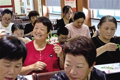 本报讯(丁兰街道) “看着难,实际做起来不复杂,你看我这几朵桃花,都是村民和我一起做的!”在皋城村党群服务中心内,皋城村党总支书记、村委会主任俞建国坐在村民中间,手持粉色扭扭棒认真缠绕,不时向老师请教细节。