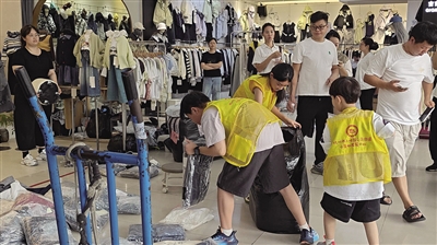 孩子们在服装市场体验商户与拉包工的辛劳