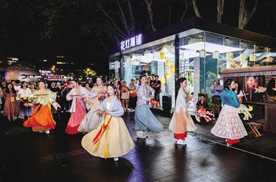 街区还通过推出“晚风音乐会”“国潮养生市集”“夏夜漫游”等系列沉浸式文旅体验项目,让游客有更多参与感与互动体验。今年上半年接待游客1066.65万人次,旅游收入同比增长11.01%。