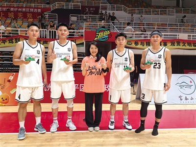 省级文化特派员阎敏(中)带着文创产品3D打印“桃花坞”助力浙BA上城队