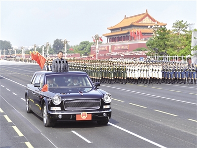 9月3日,纪念中国人民抗日战争暨世界反法西斯战争胜利80周年大会在北京天安门广场隆重举行。这是中共中央总书记、国家主席、中央军委主席习近平检阅受阅部队。新华社记者 李刚 摄