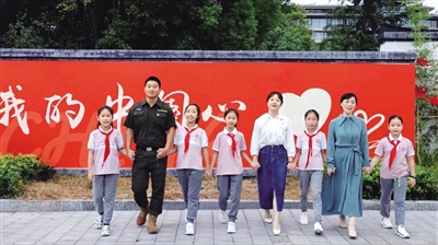 区级文化特派员陈铮(右2)与杭师附小师生一起开展“我的中国心”活动