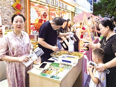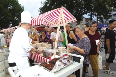 “我们准备了红烧肉、酱鸭等多种菜肴,不到一小时就卖出了一大半。”老字号张生记大酒店的铺子前,工作人员陈女士一边装盒一边介绍道,自7月起,张生记大酒店便响应街道倡议与门店需求,于每日下午4:30至5:30开展“一小时外摆计划”,以惠民价格向市民供应经典菜品,赢得了周边上班族的持久青睐。“此次活动更是直接带动了我们外摆经济的销售额,也让我们的品牌更加深入社区。”