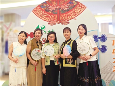 区级文化特派员张西琴(中)将“织梦华裳”新中式服饰文化活动送进学校