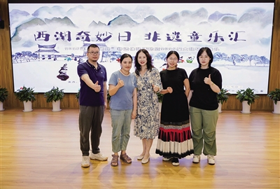 市级文化特派员涂文军(左1)参加西湖奇妙日非遗童乐汇活动