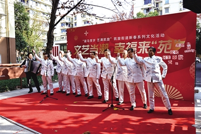 优美轻盈的舞姿、婉转悠扬的小提琴演奏、节奏鲜明的男声合唱、韵味十足的经典越剧选段……主会场非遗广场上,文艺汇演精彩纷呈,更有社区自创小品,用幽默演绎景养苑开业一年来的温馨故事,赢得居民们的阵阵掌声。