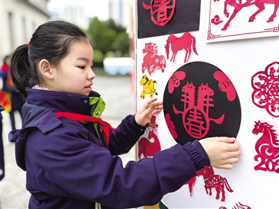 杭州市东润外国语学校的学生们剪纸刻马、纹样绘马、挥毫写福,用指尖传扬传统文化,以昂扬姿态开启新学期。