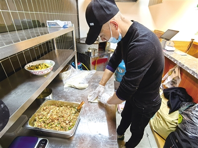 中午12点,灶头边,赵键和战友正忙碌地做饼、煮面、烧馄饨。店内顾客排着长队,“这家店用料足,鸡汤纯,味道不错,我们常来,还给老年人打折。”老顾客老沈说。