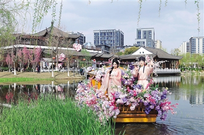 皋亭山景区内,30余种桃花、7000余株桃树与石刻家训、古典诗词相映成趣;桃花湖畔,1000余株桃树正值花期,“花神泛舟”与婚纱摄影交织成浪漫地标。居民无需门票,出门即景——这份惬意背后,是丁兰对场景营造、公共设施的精细打磨。